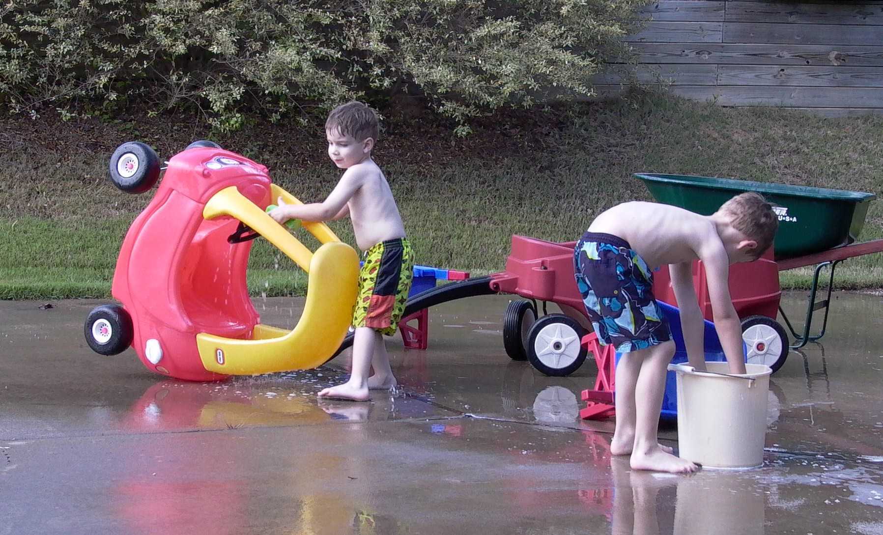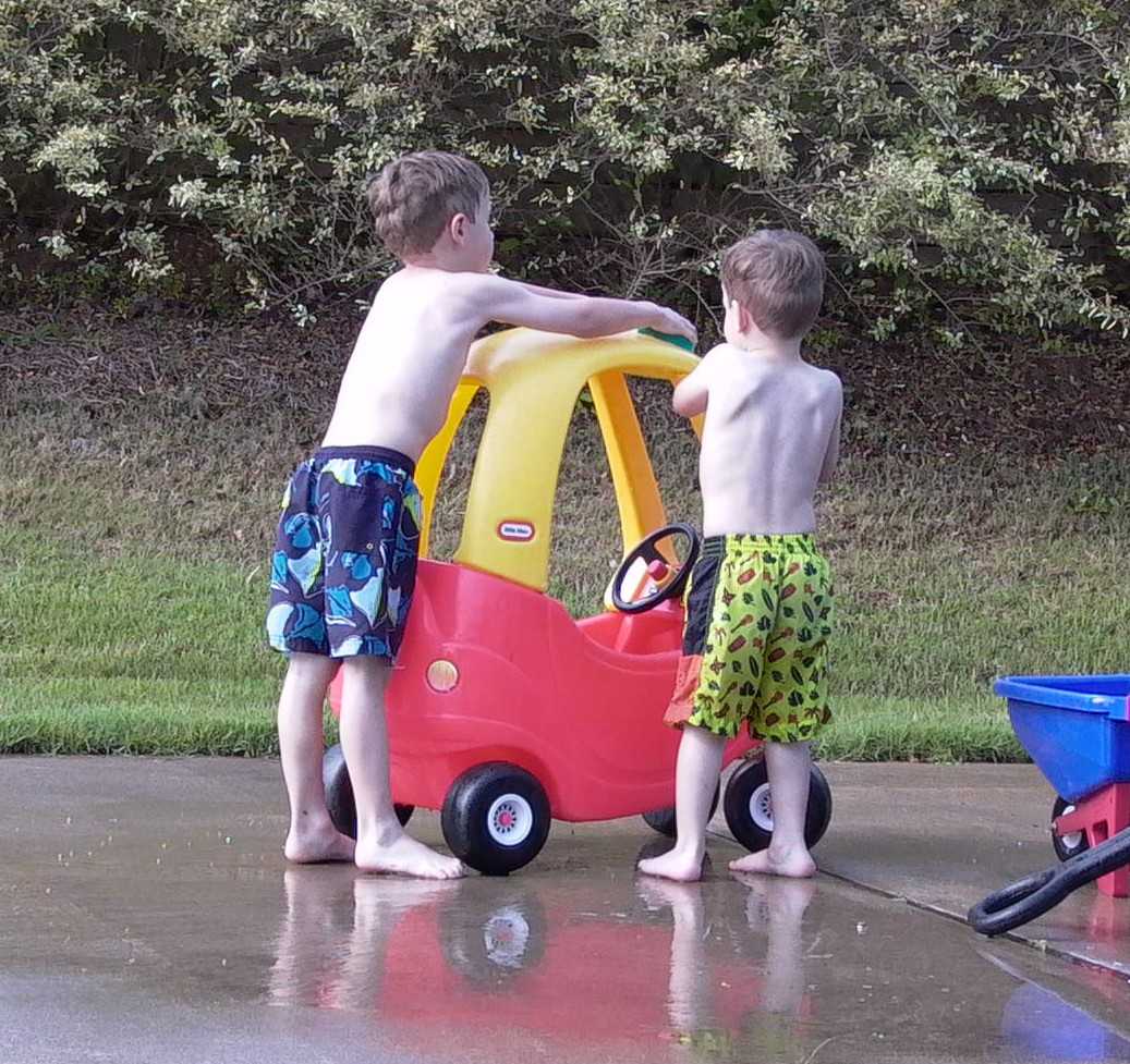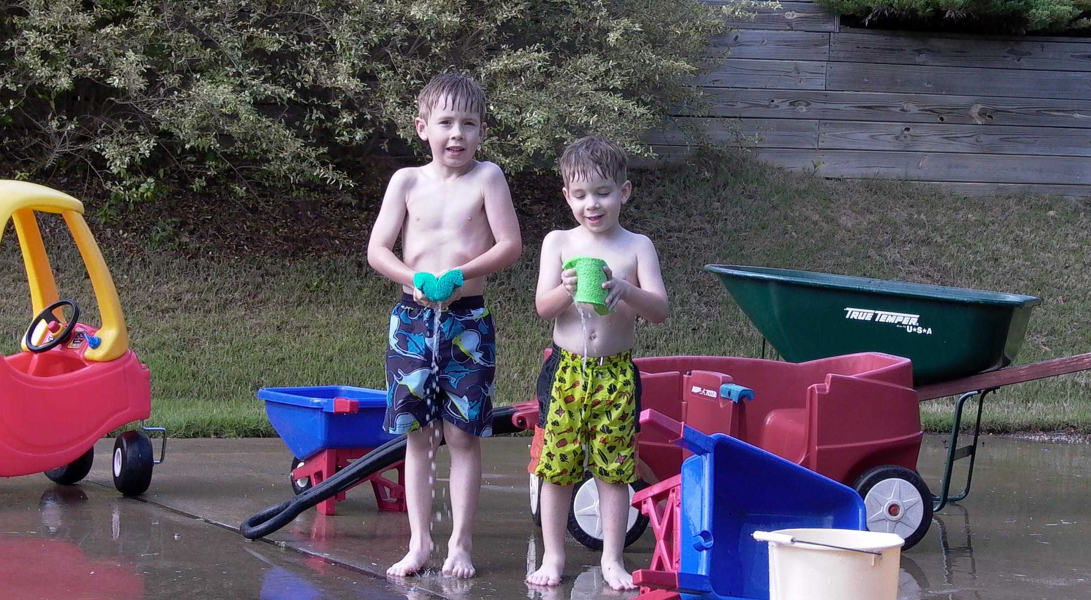 These guys are in training. In a few years they'll be ready to wash the truck and van!
