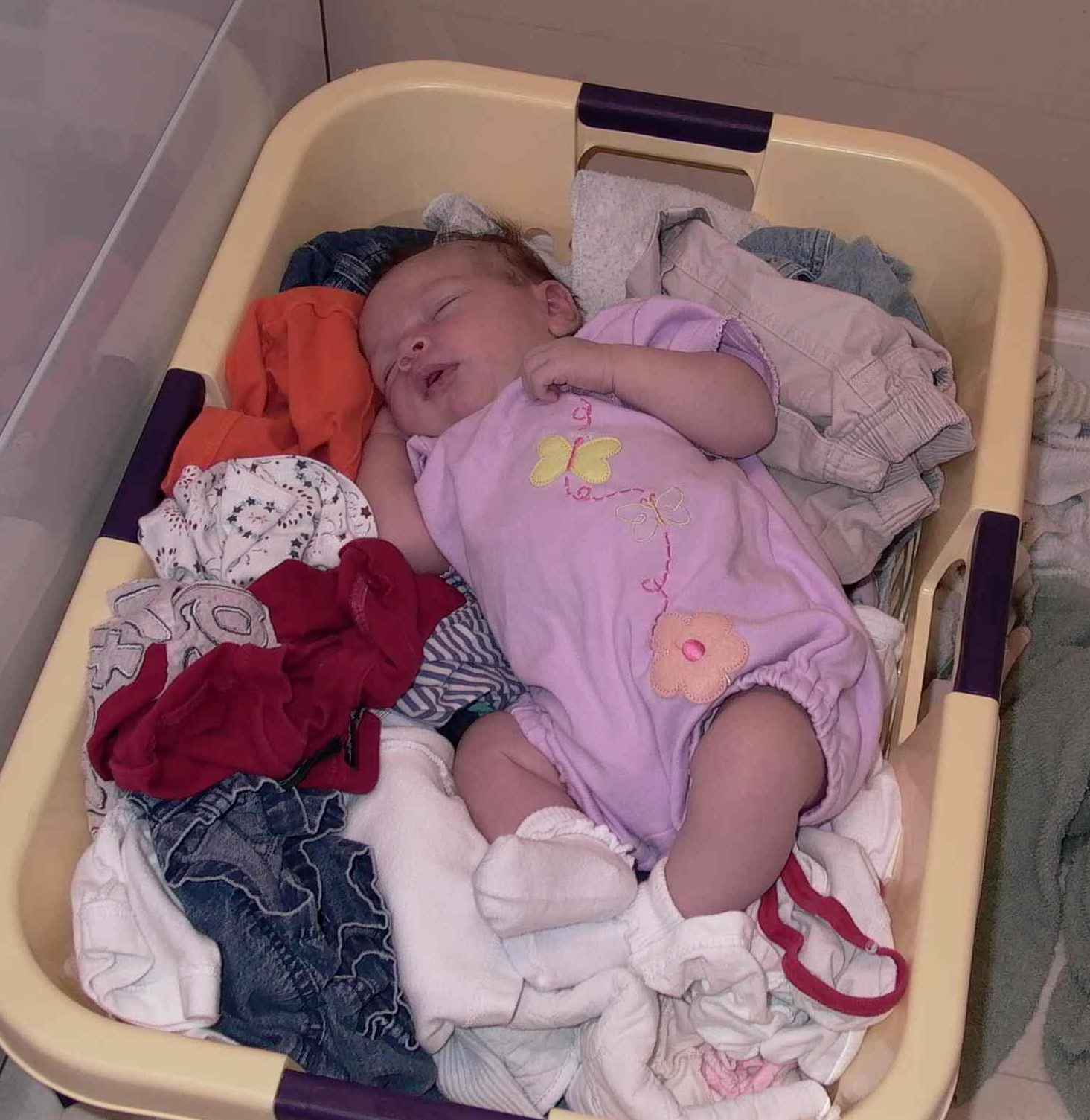 The nice thing about infants is that they're very portable and can be stored almost anywhere. (Denise's note: the clothes are clean.)