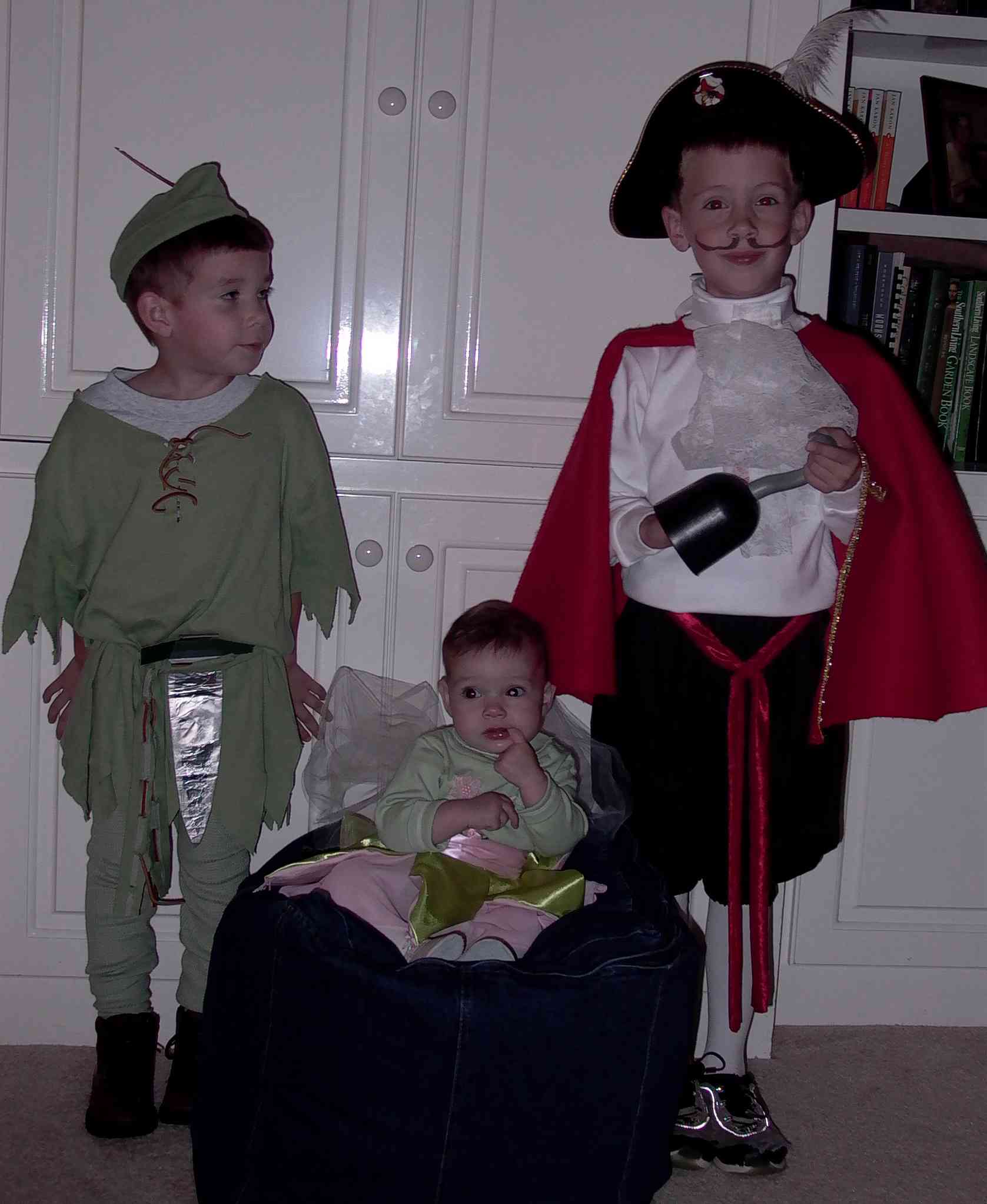 For Halloween this year the children dressed up as Peter Pan, Captain Hook, and Tinkerbell. Kudos to Denise, the best wife in the world, for making (!) all the costumes.